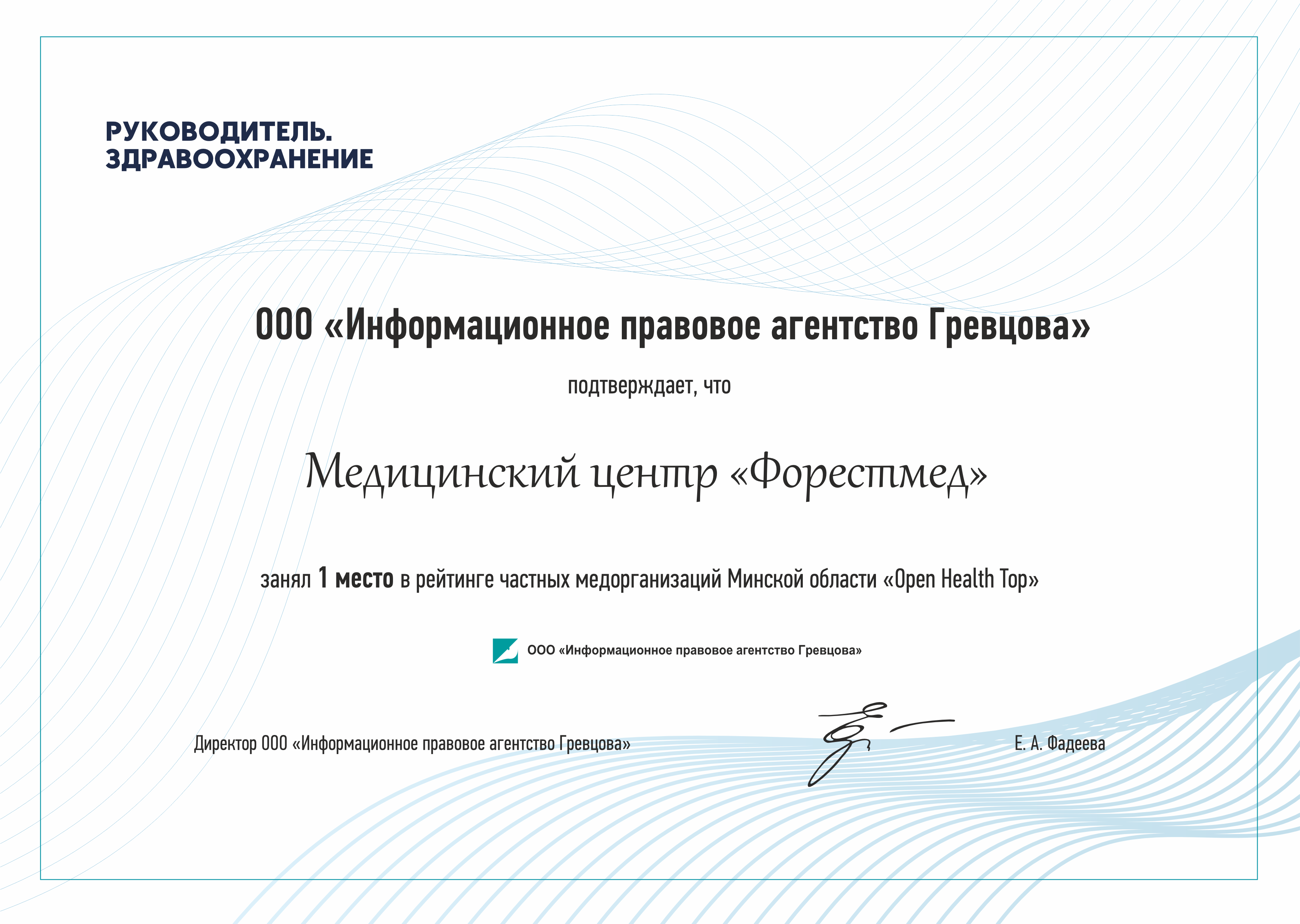 Медицинский центр «Форестмед» — на 1 месте в рейтинге лучших частных медорганизаций Минской области!
